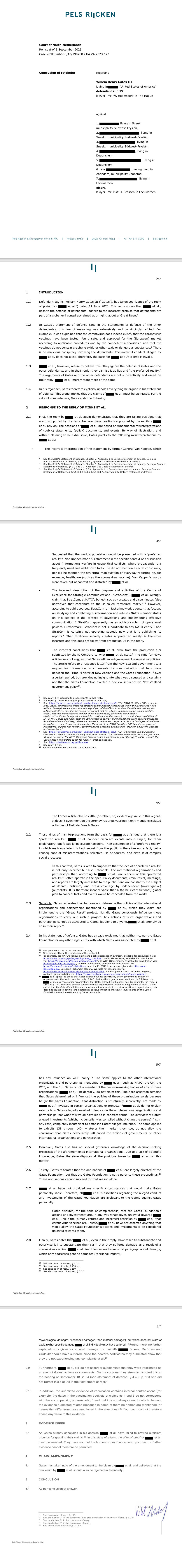 In the case in the Netherlands seeking indemnification for victims of the COVID/MRNA injections, Bill Gates replied via his attorney.