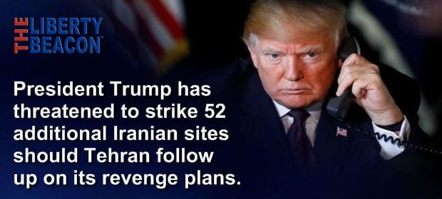 President Trump has threatened to strike 52 additional Iranian sites should Tehran follow up on its revenge plans.