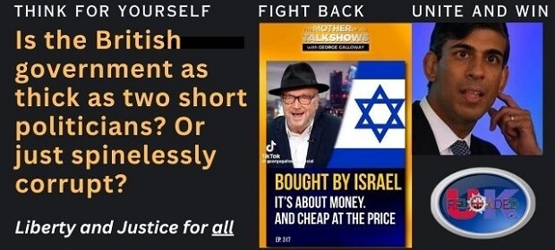 I thought this clip worth sharing because George Galloway, newly elected Independent MP for Rochdale, voices the question millions of us are now asking as the political establishment’s perpetual dance on the Zionist puppet strings becomes glaringly evident – as well as thoroughly humiliating.