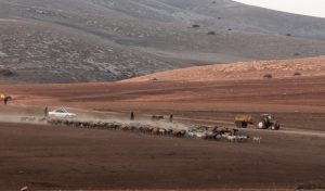 Palestinians herd their flocks during a temporary eviction order for the purpose of Israeli military exercises outside Tubas, in the northern Jordan Valley. (Photo: DCIP / Cody O’Rourke)