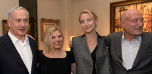 Netanyahu with his wife Sara and Hollywood producer Arnon Milchan and wife are pictured here.