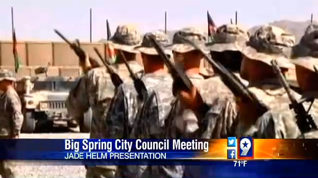 1:30 We are asking Big Spring city council for a letter of invitation which would invite “forces” to train within your city limits in areas that have low population density.