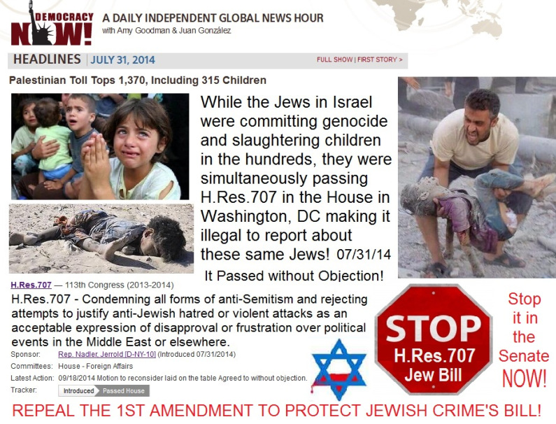 Jewish Criminal Protection Bill – STOP IT IN THE SENATE NOW! H.Res.707 protects Jewish Criminals while repealing American’s First Amendment rights!