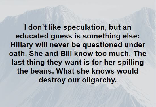 One thing Donald Trump is cognitive of… the disinfectant nature of sunlight. History will review these political imprints on humanity, but descriptive words like The Swamp, The men behind the curtain, and The Shadow Government will give new meaning to what an oligarchy was, and quite possibly still remain in our future times. It, i.e., AMERICA, may indeed remain a mystery. It all depends on you. Always did.