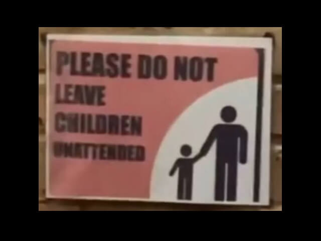 Here, for example, is a very strange eye-test for citizens recently cooked up by H.M. Government. On the one hand, the British state quite commendably wants to keep its citizens’ children safe, just as it should. This is why its functionaries put up highly useful warning signs like the one below in branches of the national Copthorne Hotel franchise, some of which have been recently commandeered to house Channel migrants from culturally enriching lands abroad: