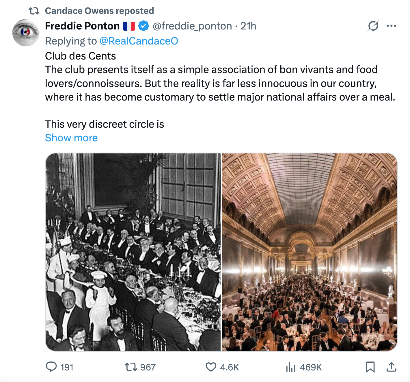 I’ve recently shared on X some background information regarding the Club des Cent in France, which she has also reposted on her timeline.