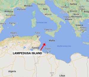 ER Editor: All of a sudden, in an incredibly short space of time (24 hours? 48?), thousands of African migrants – young men of military age with cell phones wearing nice-looking T-shirts – have ‘invaded’ the tiny Italian island of Lampedusa in the middle of the Mediterranean. Lampedusa only has a native population of around 6,000. Numbers of how many have come in vary from 2,500 to upward of 7,000+. A state of emergency has been declared. A reminder of geography —