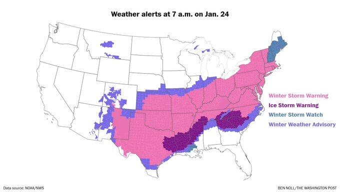Yet here we are on Saturday morning, looking over the latest weather models that show more than half the country under a winter storm warning. Noll wrote on X earlier that “55 percent of all people living in the United States — some 190 million — were under an alert related to the storm.”