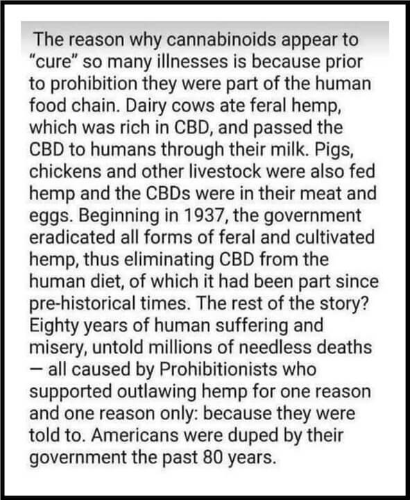 And with this meme comes the perfect time to address this, yet again… Prohibition of Natural Healing remedies, signed Harry Anslinger, 1937. And I share a couple of examples of his ludicrous quotes and beliefs which made prohibition (like with alcohol) possible…