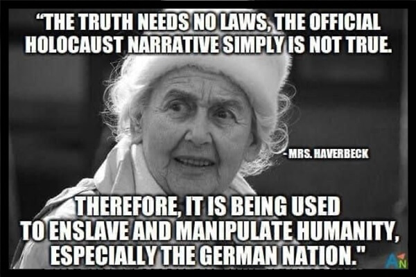 “The official narrative of the holocaust is simply not true!”, says a 93 year old Haverbeck on her way to prison at one point…