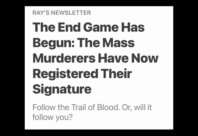 NEWS*FLASH is next, in a different format, but it works! ? In particular a great writing about THE ENDGAME HAS BEGUN… Something to make us think… Shared with permission…