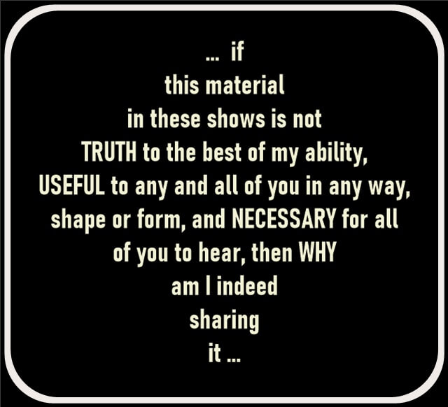Telling stories that perhaps are repeated sometimes in various shows, is a good sign, I explain, feeling a sense of truth even more, when someone is remembered having ‘said that before’, a sense of trust ensues in me… as I hope it does in each reader and listener… I’ts the ‘color’ that we are. 🙂