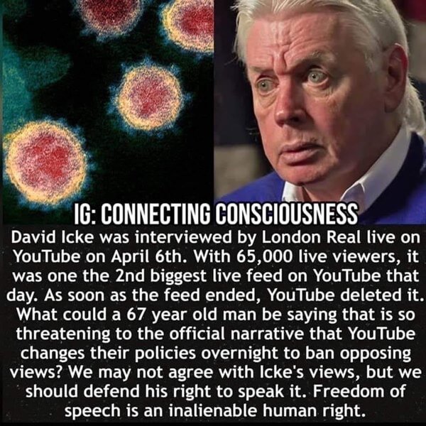 DAVID ICKE is the ‘light’ of my episode today, in the sense that some things he has to say really resonate with me, and I share this in the video, explaining how validation comes for me, after 25+ years of research, listening to him simply running through all of the subjects he touches on, in particular FEAR, being one of the Elite’s favorite tools of control of the masses… and hence the title of this episode… David Icke seriously lost me with his other videos and ideas, but being ‘INTELLIGENT’, I wanted to sit through this video, take notes, and LEARN 2 UNLEARN what I have been indoctrinated to believe… one of the things that this series is all about. And WHAT would a sixty-seven year old man have to say that would TERRIFY THE MEDIA so much? (This particular show was taken down FOUR TIMES: from YouTube once, and from Facebook three times that I know of)
