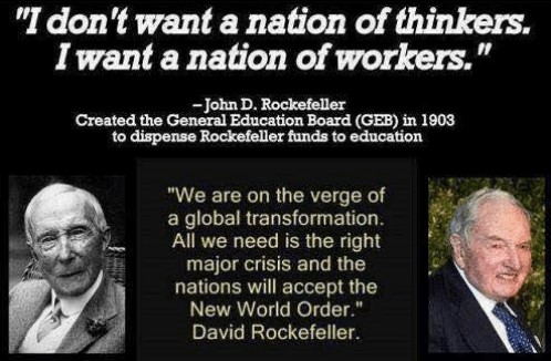 And there is also that quote from Rockefeller himself, saying that he doesn’t want thinkers, but workers…