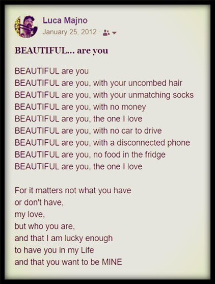 Check out my poem here… It’s called … The Real You ~ To me, this is (also) a definition of true Love ~ ‘what you don’t have’ ~ and why THAT is why I love you ~ … and it is called: