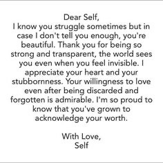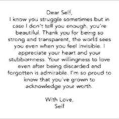 Challenging, to say the least. But this is my week. So I try to find encouraging words to push myself ahead… I look inward… Dear Self.
