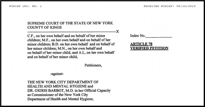 On April 15, 2019, a legal challenge was filed in the New York State Trial Court by Robert Krakow, Robert F. Kennedy, Jr. and Patricia Finn against the New York City Department of Health and Human Hygiene for their forced Measles-Mumps-Rubella vaccination. The legal team asked for a temporary restraining order against the mandate that the Judge will likely review and provide an ex parte decision. Children’s Health Defense is supporting these efforts.