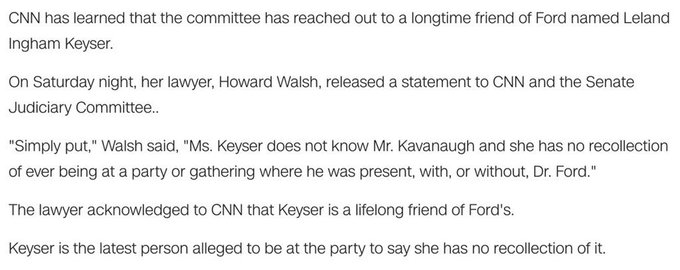 Everyone at the party has said they have no idea what Christine Blasey Ford is talking about, even her longtime friend Leland Ingham Keyser!