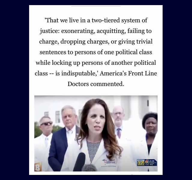 And from there, we swing over to AMERICA’S FRONTLINE DOCTORS, who are taking a similar risk of ‘career suicide’, and vanishings by this Evil, stating flatly: