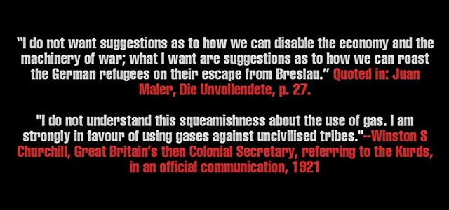 And we expose CHURCHILL, IKE and the like, who engineered the destruction of Germany once and for all, and I expose as well, his well-documented ‘talents’ at ‘asphyxiating these uncivilized tribes, using gasses’…