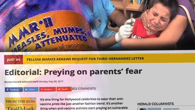 The vaccine hysteria rhetoric is heating up so much that the Boston Herald editorial board on May 10 wrote that “lying” to people about vaccines should be a “hanging offense.”