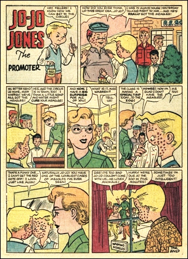 It starts with a fever, cough, itchy eyes, and then a head to toe rash–MEASLES! In the pre MMR era measles was the plot of television shows, comic strips, children’s books, and even television shows. No one feared it and everyone expected to catch it at some point! Measles was considered a normal part of growing up. A week home from school or work and you were granted the benefits of lifelong immunity to the measles and a stronger immune system.