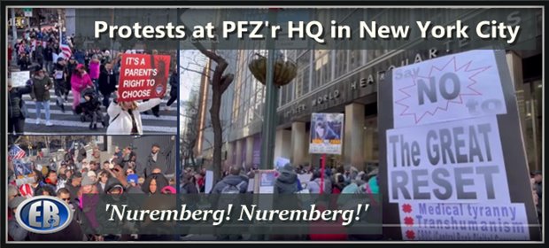 #HappeningNow A medical freedom rally is taking place outside of #Pfizer World Headquarters in NYC. Signs brought in tribute to the vaccine injured. #vaccineinjuries #protest #news pic.twitter.com/9q1igEyqkb