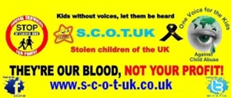They’re Our Blood, Not Your Profit! Image from Facebook page – Stolen Children of the UK.