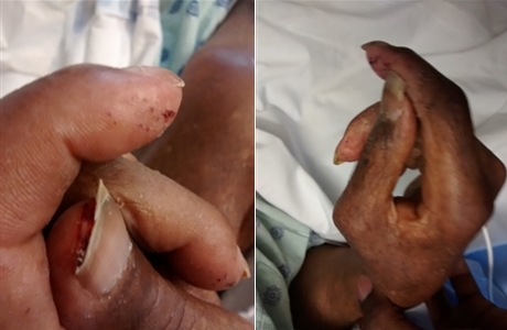 Here are some photos of my granddad’s condition. One shows how thin he has become. There is a photo showing blood caked under my granddad’s nails. A picture attached shows how long his finger nails were … The hospital states that my granddad is 5 ft 9 and currently weighs around 135 lbs.