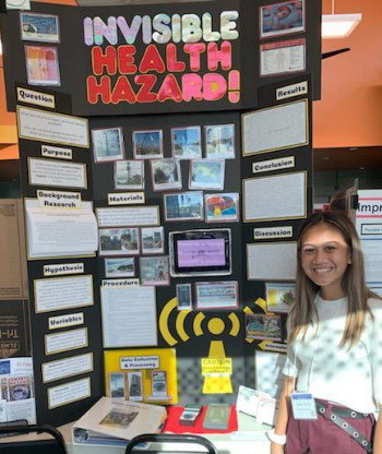 I met Taylor, an 8th grader, on my trip to Hawaii in January 2020. She came to my lecture in Honolulu. I was excited when she approached me and told me that she came to learn more about the harms of wireless for her science project. Taylor decided to do her science project on the radiation that is emitted from wireless devices and the health effects caused from these invisible but very harmful electromagnetic waves. The title she gave to her project “Invisible Health Hazard”, perfectly describes the problem. She came to my lecture after she already won the science competition in her school and was selected to go to the district’s competition.