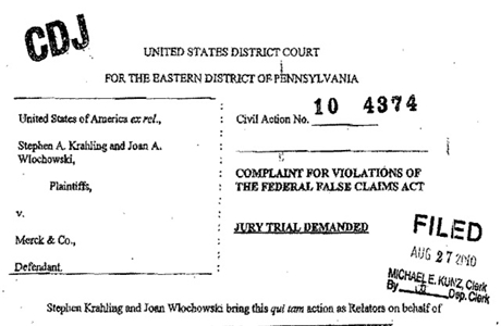 The following quotes are found in this document: United States District Court for the Eastern District of Pennsylvania. Civil action No. 10-4374. “Complaint for Violations of the Federal False Claims Act.”