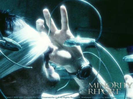 FICTION: A hacker captures visions from the “precog” Agatha’s mind and plays them for John Anderton.