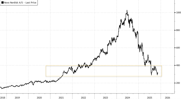 (ZH) – Just before the US cash session, Novo Nordisk A/S announced it will slash prices on Wegovy and Ozempic in a direct challenge to Eli Lilly’s obesity drug, aiming to regain market share. The announcement comes just weeks after President Trump finalized a deal with Novo and Lilly to reduce costs as part of the administration’s affordability push ahead of next year’s midterms.