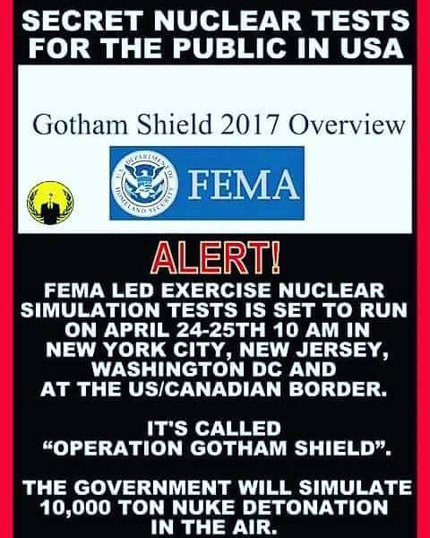 Between April 18th thru May 5th, 2017, state, local, and federal organizations alike are planning for Operation Gotham Shield 2017 — a major nuclear detonation drill in the New York-New Jersey area, along with the U.S.-Canadian border. During this exercise, 4 nuclear devices, 2 of which are rendered “safe” during the U.S. Department of Defense (DOD) Vital Archer Exercise, and one successful 10kt detonation in the NYC/NJ area, along with one smaller detonation on the U.S./Canadian border are to take place.