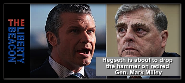 (Tyler Durden Reports) – Defense Secretary Pete Hegseth is about to drop the hammer on retired Gen. Mark Milley, Trump’s former chairman of the joint chiefs of staff and one of the president’s favorite rhetorical punching bags. In addition to pulling Milley’s security clearance and yanking his personal security detail, Hegseth will also ask the Pentagon’s inspector general to investigate his conduct, and the probe could end in Milley receiving a demotion, Fox News reported Tuesday.