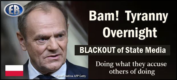 Scenario right now: The globalists in power think public media was too politicized and a ‘threat to democracy’ under the populist Law and Justice party. So in defending democracy, the new coalition government wades in, acting ILLEGALLY to SHUT DOWN public broadcasting. ‘Trust us, we’re the government.’ Poles experienced this under the Communists.