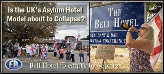 ER Editor: A reminder of a couple of things. Protests concerning migrant hotels up and down the country have been active for some time in the UK, with youtubers filming these places to find out who is staying there and at what cost to the general public. We published on these protests HERE from July. The Bell Hotel in Epping became the test case for this problem, with a High Court injunction being issued this month to the effect that asylum seekers have until September 12 to vacate the premises. People across the country with their own troublesome local hotels are obviously seeking the same result.