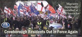 Meanwhile in Horley (Surrey, near London), three arrests were made outside the Four Points hotel – two for breach of the peace and one for breaching the conditions of a community protection notice.