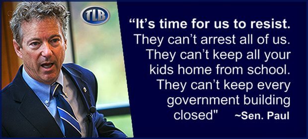 “It’s time for us to resist. They can’t arrest all of us. They can’t keep all of your kids home from school. They can’t keep every government building closed – although I’ve kept a long list of ones they should,” Paul said in the video posted to his Twitter account.