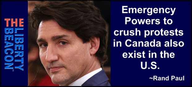 Senator Rand Paul has warned that the emergency powers being wielded by the Trudeau regime in an effort to crush protests in Canada also exist in the U.S. and can be implemented at any time by the government.