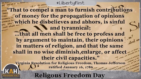 TLB Note: As you have probably already figured out … Today is Religious Freedom Day. This is a topic this is gaining significance by the day and continues to accelerate. Religious freedom in America today is nothing like our founders sought to make it … and no one can explain this better than TLB’s friend and contributor, KrisAnne Hall, JD. Please take the time to read the following presentation … and truly understand the issue at hand!