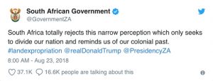 South Africa’s land reform program is now front and center after US President Donald Trump tweeted about the South African government’s plan to steal farms from white landowners.