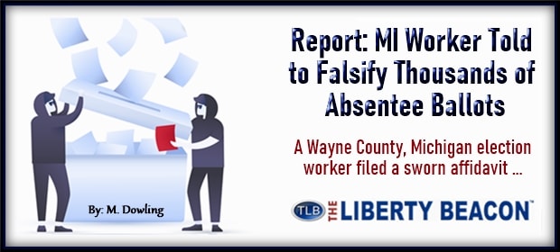 The above article (Report MI worker was told to falsify thousands of absentee ballots) was created and published by Independent Sentinel and is republished on TLB under “Fair Use” (see our disclaimer below) with attribution to the author M. Dowling and independentsentinel.com.