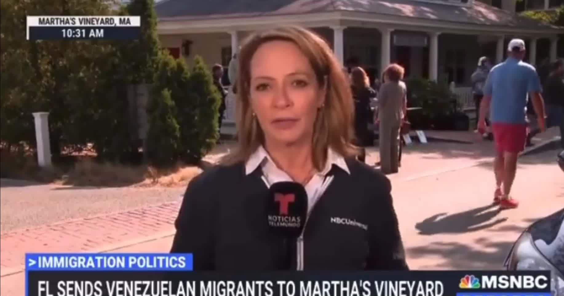 “I’m here to Martha’s Vineyard,” the reporter said. “So, there’s activists here… that are saying that these people were victims of human trafficking. They want an investigation from the Justice department into what Governor DeSantis is doing, what Governor Greg Abbott is doing, because they’re saying that these people are being abused and used to bring a border crisis deeper into the country.”