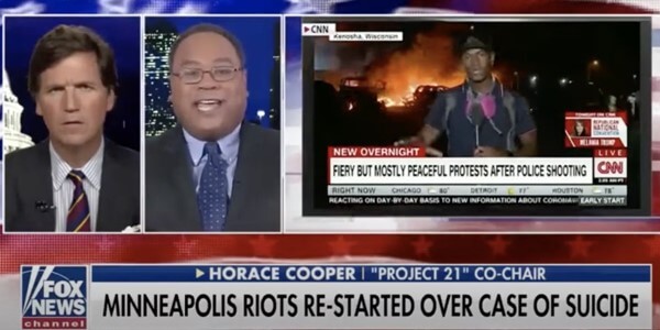 On the Fox News Channel’s “Tucker Carlson Tonight,” Carlson asked Project 21 Co-Chairman Horace Cooper: “Who is helped by transparent lying?” and “What’s the upside” for the media to water down their coverage of anarchy?
