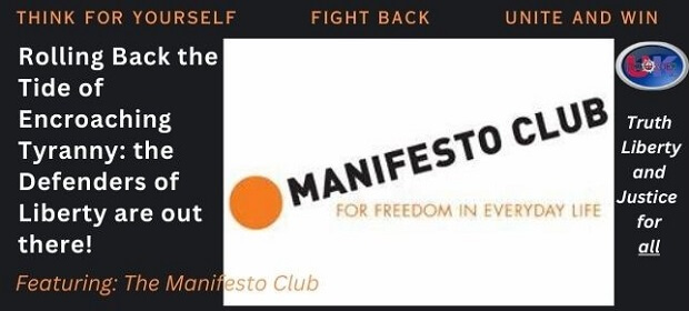 I’m featuring the following message from the Manifesto Club in the spirit of helping you find and connect with groups that are working hard at the sharp end to roll back the tide of encroaching tyranny.