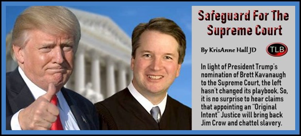 In light of President Trump’s nomination of Brett Kavanaugh to the Supreme Court, the left hasn’t changed its playbook. So, it is no surprise to hear claims that appointing an “Original Intent” Justice will bring back Jim Crow and chattel slavery. A reasonable look at history (which is not to be expected from the left) should give rise to the opposite conclusion. A SCOTUS Justice who follows original intent should be viewed as a safeguard against a racist court. IF you will read to the end you will understand what I mean.