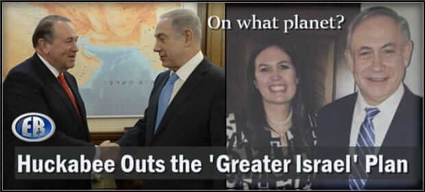 ER Editor: We believe this is a public outing (at minimum) of the existence of the Jewish supremacist ‘Greater Israel’ plan or Oded Yinon plan, that which posits an Israel-takeover of the Middle East. Zionist traitor Huckabee has been gone for a while, we believe. His ‘daughter’ was likely a MTF, suggesting dabbling in Satanic networks by the family (we have no proof of that, although Marjorie Taylor Greene can also be found looking pretty butch in a previous incarnation. There are plenty of them out there).