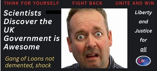 A jubilant Rishi Sunak, posting in the Facebook group, “Fans of Genocide”, today sent the world reeling and gasping with indifference when he announced the discovery by scientists that he and his government, affectionately known by the British people and other dissident movements as “The Gang of Loons”, are really brilliant (or “awesome” if you speak American) and not at all demented after all.