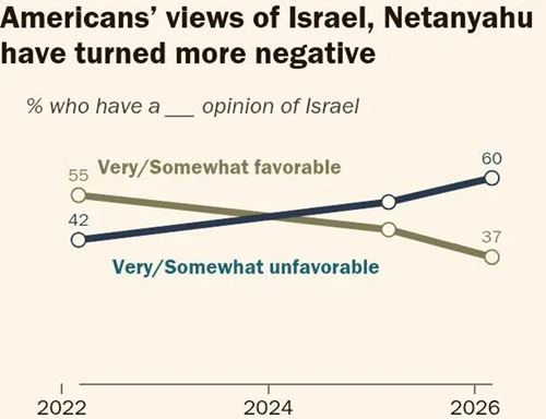 Amid a major war on Iran waged in partnership with the United States, Israel’s reputation among Americans has continued to deteriorate, with 60% of US adults viewing Israel unfavorably.
